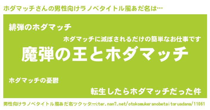 | 女子向けラノベタイトル風あだ名 | 『ホダマッチが死なない童話 林檎のホダマッチの診療簿』 |