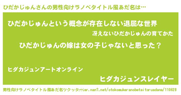 | 女子向けラノベタイトル風あだ名 | 『ひだかじゅん様がみてる』 |