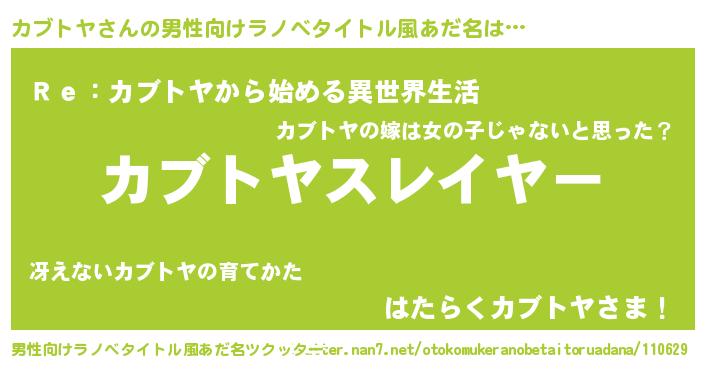 | ヒーロー風カッコイイあだ名 | 『超時空戦士カブトヤ』『暗黒騎士カブ』 |