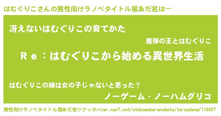 | 意味不明あだ名 | 『自称はむぐりこ』『ペロリンはむぐりこ』 |