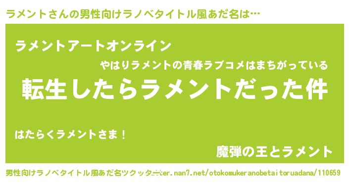 | 胡散臭い通販商品みたいなあだ名 | 『モテモテ間違いなしブレスレット…その名も「ラメント」』 |