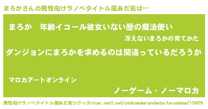 | 女子向けラノベタイトル風あだ名 | 『まろかは平凡を望む』『まろか恋絵巻』 |