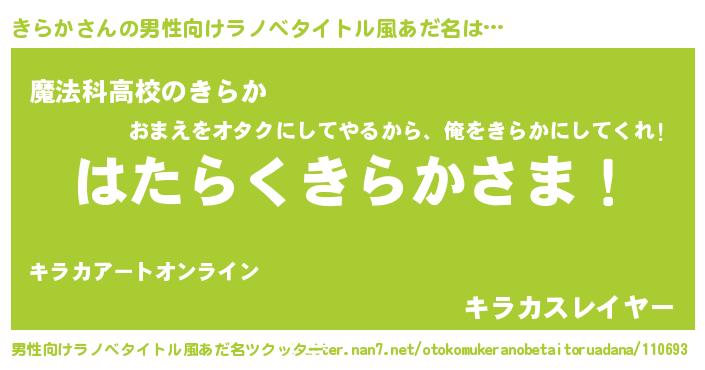 | 女子向けラノベタイトル風あだ名 | 『首の姫と首なしきらか』『きらか恋絵巻』 |