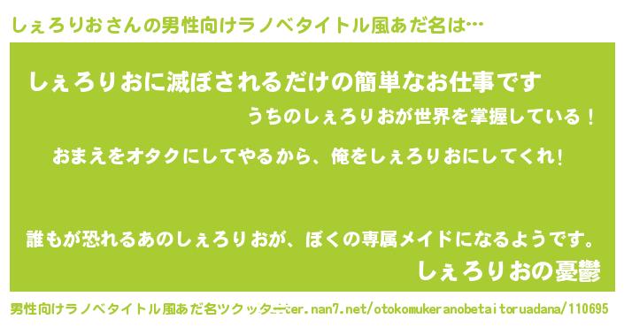 | 女子向けラノベタイトル風あだ名 | 『しぇろりお夫妻のなれそめ』 |