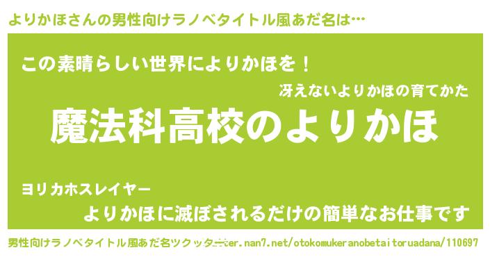 | 女子向けラノベタイトル風あだ名 | 『よりかほなんてお断りですっ。』 |