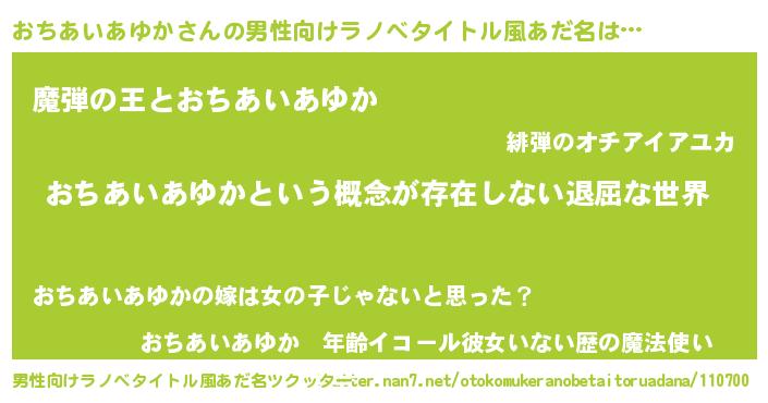 | 胡散臭い通販商品みたいなあだ名 | 『絶対に幸福をもたらす健康食品…その名も「おちあいあゆか」』 |