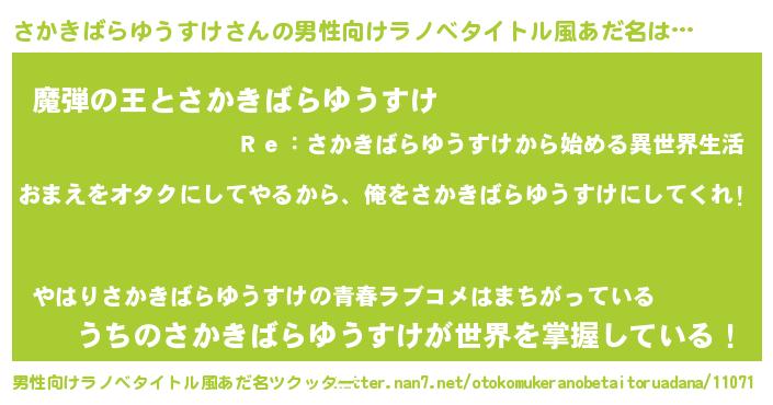 | 胡散臭い通販商品みたいなあだ名 | 『100人中100人が認めたイリジウム磁石…その名も「さかきばらゆうすけ」』 |