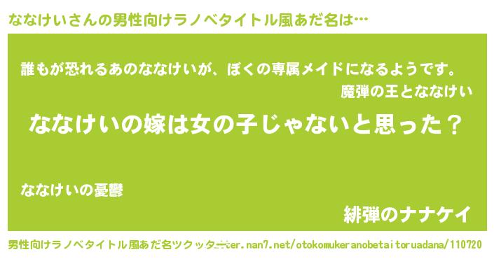 | 女子向けラノベタイトル風あだ名 | 『ななけい様がみてる』 |