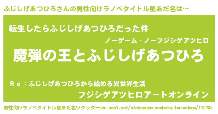 | 意味不明あだ名 | 『住所不定無職ふじしげあつひろ(41歳)』 |
