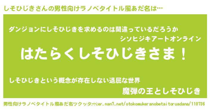 | 意味不明あだ名 | 『とにかく怪しいしそひじき』 |