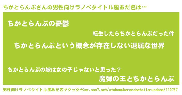 | 胡散臭い通販商品みたいなあだ名 | 『来世でも幸せになれる水素水…その名も「ちかとらんぷ」』 |