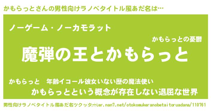 | 胡散臭い通販商品みたいなあだ名 | 『世界中を虜にした100年もののヴィンテージワイン…その名も「かもらっと」』 |