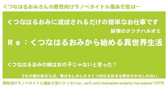 | 女子向けラノベタイトル風あだ名 | 『闇のくつなはるおみ』 |