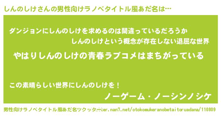 | 胡散臭い通販商品みたいなあだ名 | 『幸せが訪れる高級そうな壺…その名も「しんのしけ」』 |