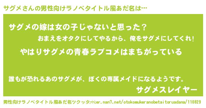 | 女子向けラノベタイトル風あだ名 | 『サグメ伯爵の花嫁』『サグメ様がみてる』 |