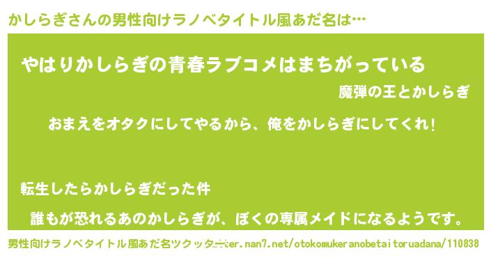 | ヒーロー風カッコイイあだ名 | 『正義の使者かしらぎ』『ネオカシラギ』 |