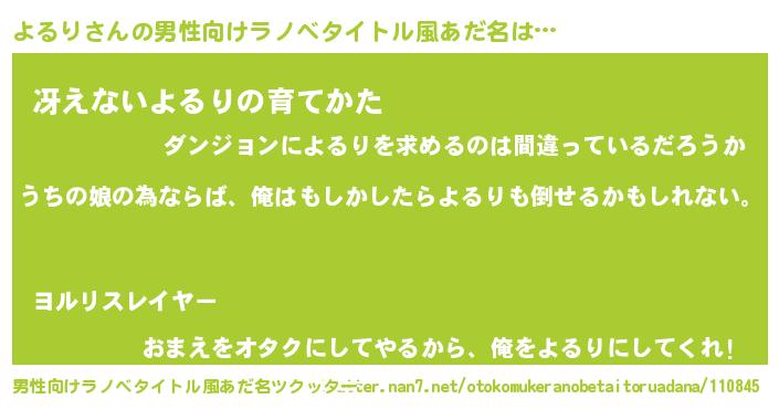 | ヒーロー風カッコイイあだ名 | 『ウルトラよるりマン』『暗黒騎士ヨル』 |