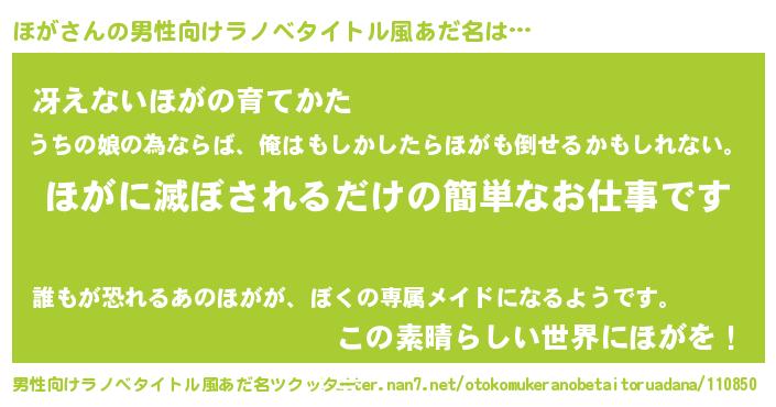 | 意味不明あだ名 | 『住所不定無職ほが(91歳)』『永久保存ほが』 |