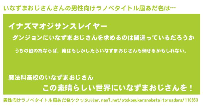 | 胡散臭い通販商品みたいなあだ名 | 『運命の人と巡り会える高級そうな壺…その名も「いなずまおじさん」』 |