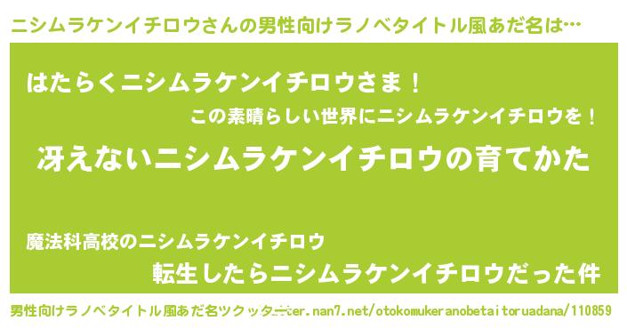 | 胡散臭い通販商品みたいなあだ名 | 『世界中を虜にした100年もののヴィンテージワイン…その名も「ニシムラケンイチロウ」』 |