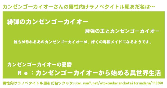 | 女子向けラノベタイトル風あだ名 | 『異世界でカフェカンゼンゴーカイオーを開店しました。』 |