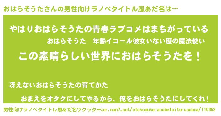 | 意味不明あだ名 | 『住所不定無職おはらそうた(89歳)』 |