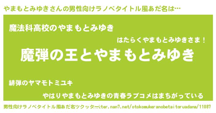 | 女子向けラノベタイトル風あだ名 | 『乙女ゲームの破滅フラグしかない悪役やまもとみゆきに転生してしまった…』 |