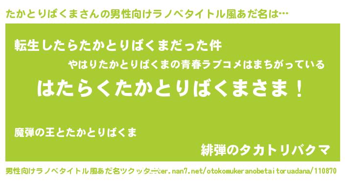 | 女子向けラノベタイトル風あだ名 | 『首の姫と首なしたかとりばくま』 |