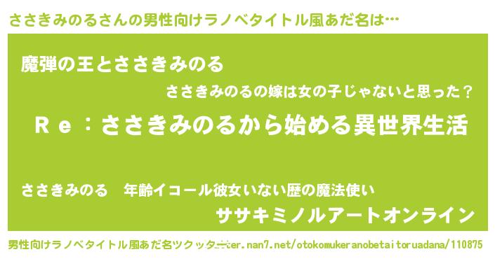 | 女子向けラノベタイトル風あだ名 | 『ささきみのるストレイドッグス』 |