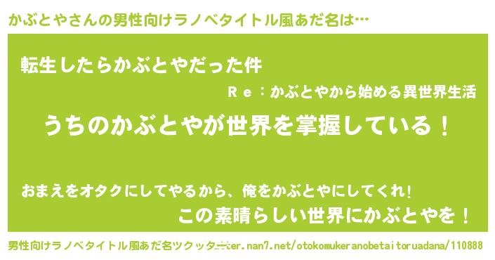| ヒーロー風カッコイイあだ名 | 『仮面カブダー』『ウルトラ戦士カブトヤ』 |