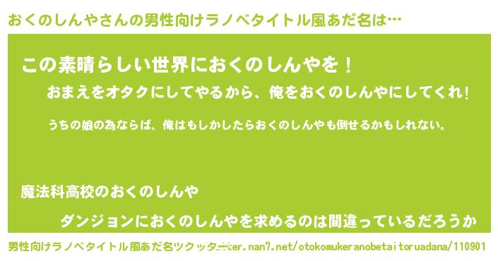 | 女子向けラノベタイトル風あだ名 | 『おくのしんや伯爵の花嫁』 |