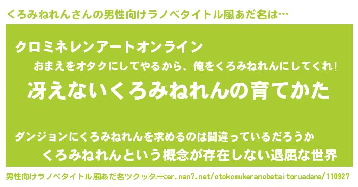 くろみねれんさんの男性向けラノベタイトル風あだ名をツクッター!