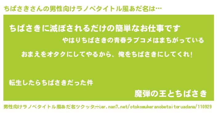 | 女子向けラノベタイトル風あだ名 | 『ちばさき夫妻のなれそめ』 |