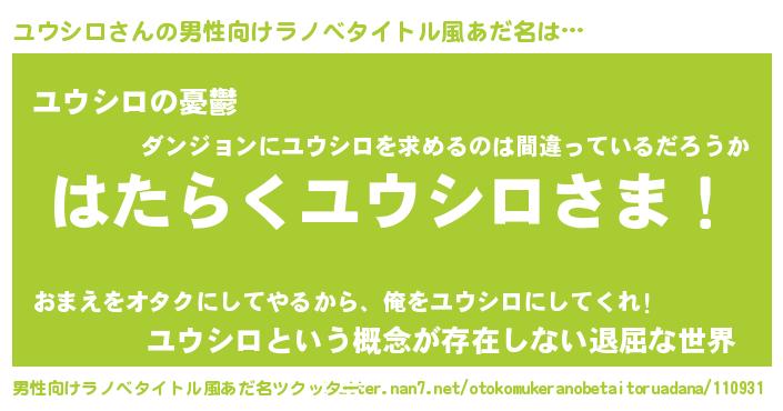 | ヒーロー風カッコイイあだ名 | 『スーパーユウシロ』『ネオユウシロ』 |