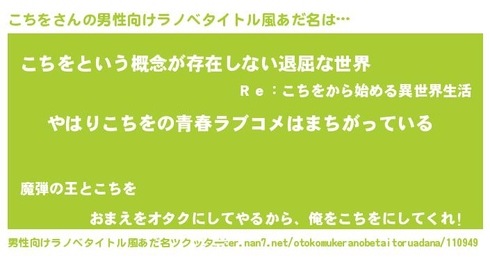 | 女子向けラノベタイトル風あだ名 | 『こちを伯爵の花嫁』『闇のこちを』 |