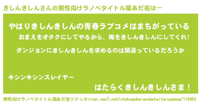 | 女子向けラノベタイトル風あだ名 | 『きしんきしんは平凡を望む』 |