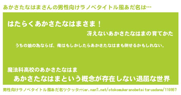 | 女子向けラノベタイトル風あだ名 | 『あかさたなはまの婚約者』 |