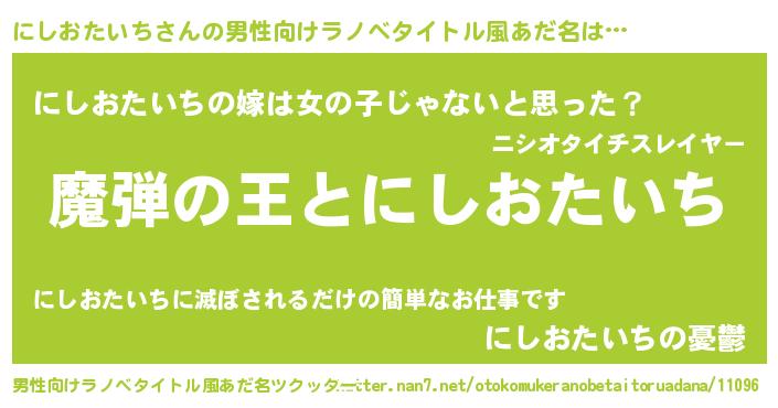 | 女子向けラノベタイトル風あだ名 | 『にしおたいちが死なない童話 林檎のにしおたいちの診療簿』 |