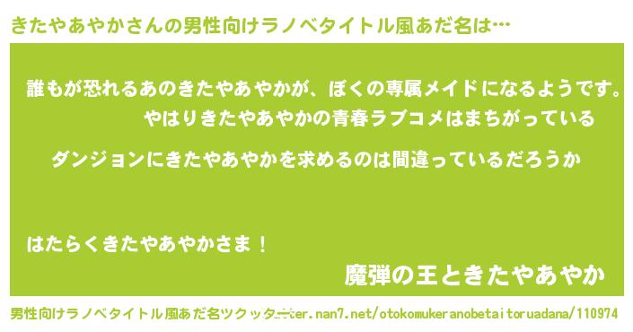 | 女子向けラノベタイトル風あだ名 | 『きたやあやかは平凡を望む』 |
