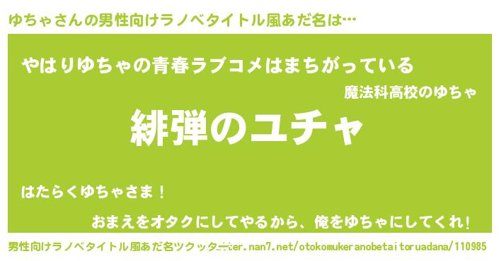 | 意味不明あだ名 | 『ゆちゃフォーエバー』『自称ゆちゃ』 |