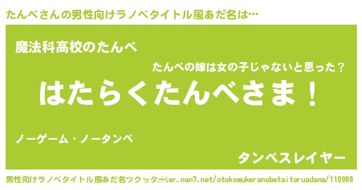 | 女子向けラノベタイトル風あだ名 | 『首の姫と首なしたんべ』 |