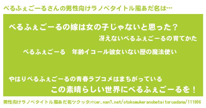 | 伝説のあだ名 | 『覚醒した遊び人べるふぇごーる』 |