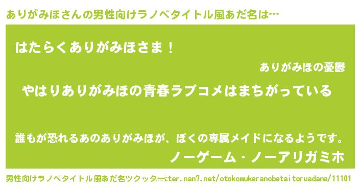 | 女子向けラノベタイトル風あだ名 | 『ありがみほ伯爵の花嫁』 |