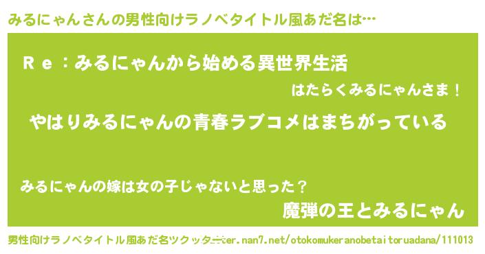 | 意味不明あだ名 | 『みるにゃんフォーエバー』 |