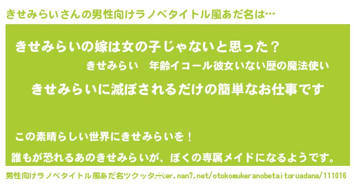 | 欧米人風あだ名 | 『アンジェラ・きせみらい』 |