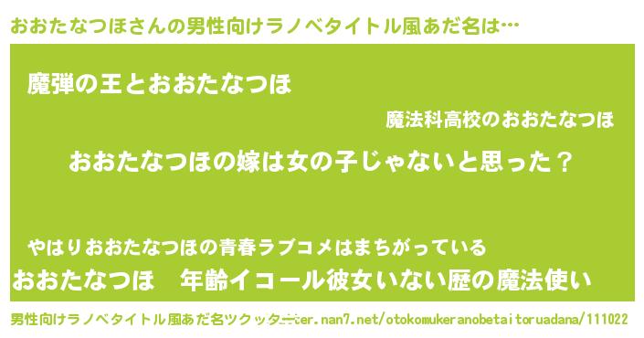 | 女子向けラノベタイトル風あだ名 | 『おおたなつほの卵を拾いまして』 |