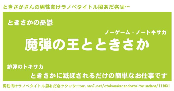 | 女子向けラノベタイトル風あだ名 | 『ときさかが死なない童話 林檎のときさかの診療簿』 |