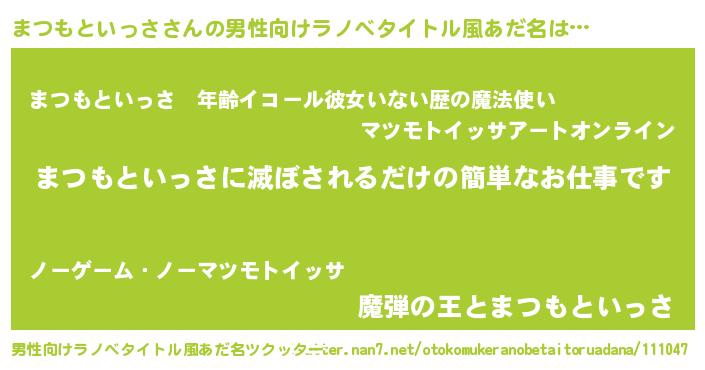 | 伝説のあだ名 | 『封印されし竜騎士まつもといっさ』 |