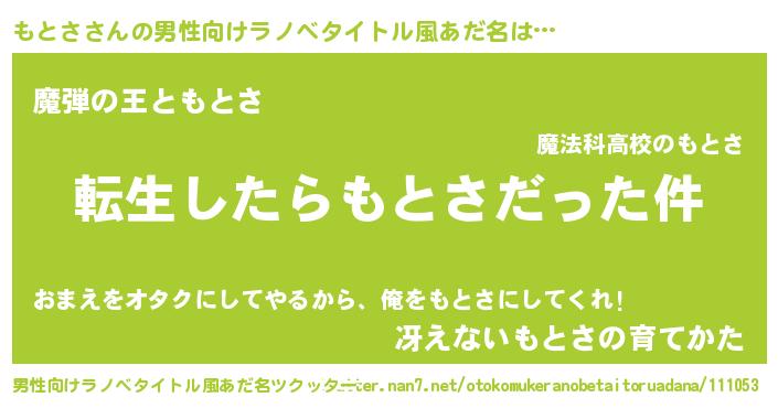 | 女子向けラノベタイトル風あだ名 | 『もとさの玉の輿計画!』 |