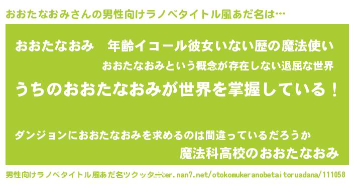 おおたなおみさんの男性向けラノベタイトル風あだ名をツクッター!